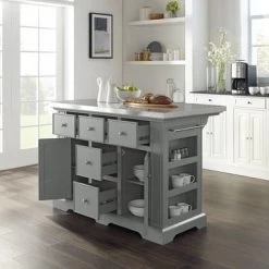 Julia Wood Top Kitchen Island – 50 “W X32 “D X 36 “H – Stationary – Gray – Wood