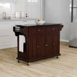 Full Size Solid Black Granite Top Kitchen Cart – N/A – Kitchen Cart – Wood – Brown