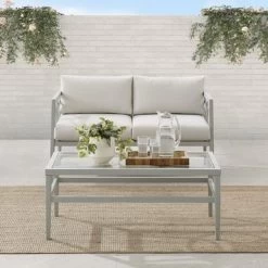 Bates Outdoor Metal Loveseat Glider – 28″x48.75″x32.5″ – 28″x48.75″x32.5″ – Navy Gloss