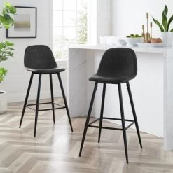 Weston 2Pc Bar Stool Set – 19″d X 19″w X 39″h – Set Of 2 – Distressed Black – Bar Height