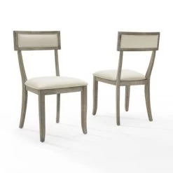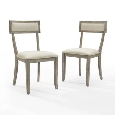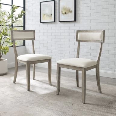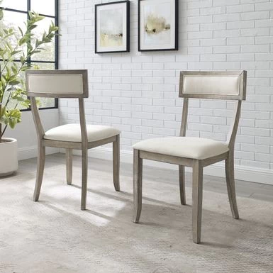 Complete a stylish dining set with these chic dining chairs from Crosley. A contemporary take on a Greek design, these chairs feature a rustic grey finish with padded seats and backrests. These charming chairs pair well with modern farmhouse, traditional, and rustic, decor styles.