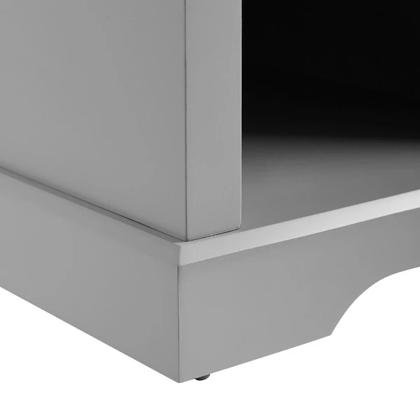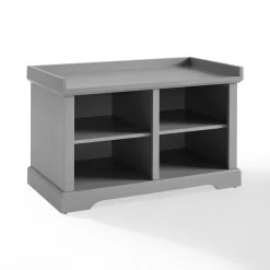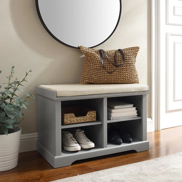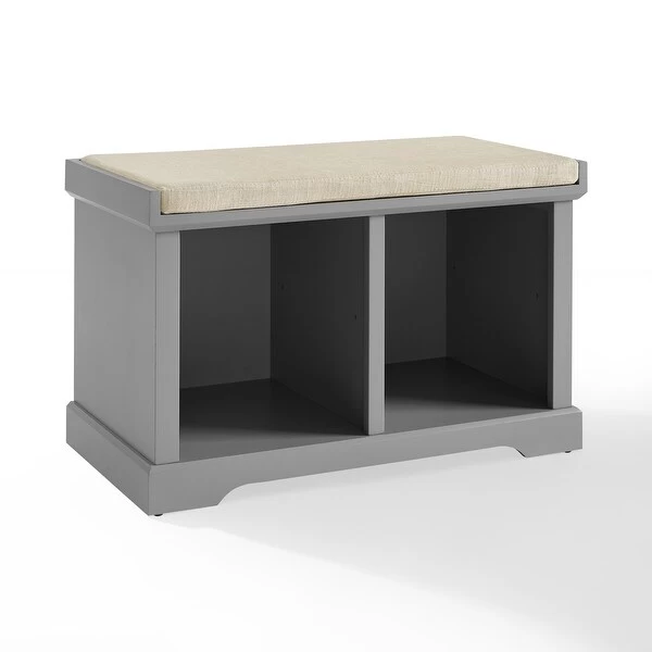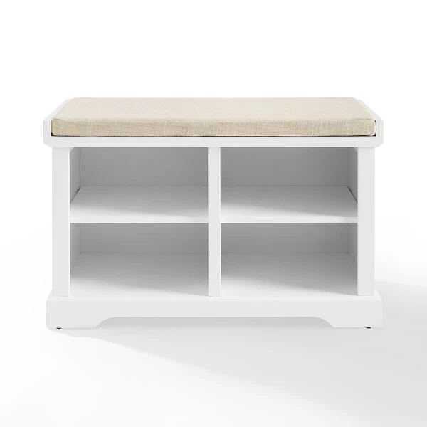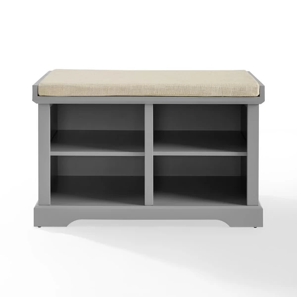 Introducing the Anderson Padded Storage Bench from Crosley Furniture! This transitional style bench is perfect for organizing your entryway. The MDF and veneer frame provide durability and feature two removable shelves that form four open compartments. Choose from two finishes, white or grey, and enjoy the comfort of a tan linen cushion. Get ready to keep your shoes organized in style!
