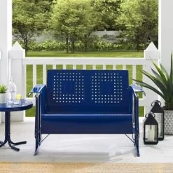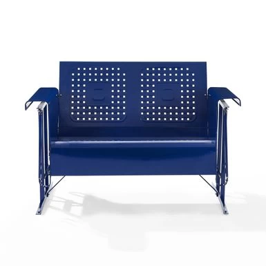 Relax in retro style with the Bates Outdoor Metal Loveseat Glider. Featuring a unique basket weave design that allows air to circulate and a smooth gliding mechanism for comfort, this vintage-style loveseat is made of durable steel with a powder-coated finish that resists UV, rust and sun fade. Choose from a variety of vibrant colors to add a dash of fun to your porch or patio.