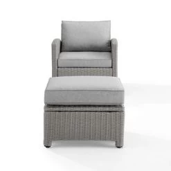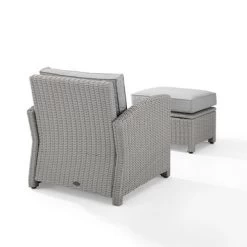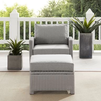 Kick back and relax in the luxurious Bradenton 2Pc Chair Set. This outdoor set includes a chair and ottoman with sturdy steel frames wrapped in all-weather wicker with moisture-resistant cushions for a comfortable deep seating experience. The versatile modular design pair perfectly with other items in the collection, making it a great addition to your outdoor retreat.
