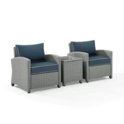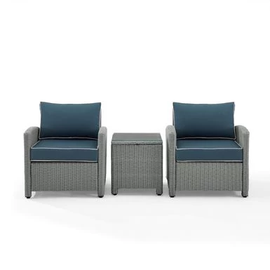 Create a relaxing retreat on your front porch or patio with the Bradenton 3pc Outdoor Wicker Armchair Set. This traditional-style set features two armchairs and a side table with steel frames wrapped in all-weather wicker. Gentle arches on the armrests and moisture-resistant cushions make this set comfortable and stylish. The tempered glass top of the side table is perfect for resting a cool drink and adds a touch of elegance. Kick back and enjoy the sunshine with this inviting outdoor furniture.