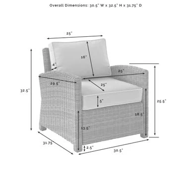 - Armchair Dimensions: 32.5″H x 30.5″W x 31.75″D