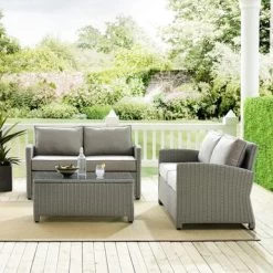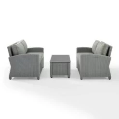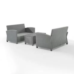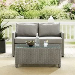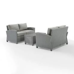 Whether you are lounging solo or entertaining a group, the Bradenton 3pc Conversation Set fits the bill. The sturdy steel frame is wrapped in a beautiful all-weather wicker and topped with moisture-resistant cushions. With gently arched arms and deep seating, the Bradenton loveseats are stylish and comfortable, while the glass top coffee table makes outdoor entertaining a breeze.