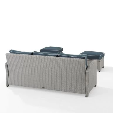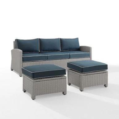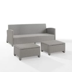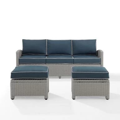 Transform your outdoor space into a tranquil oasis with the Bradenton 3Pc Outdoor Wicker Sofa Set. This stylish set includes two ottomans and a sofa, all boasting a transitional design with weather-resistant half-round resin wicker and powder-coated steel frames. Plus, the included cushion covers and cores are made of durable, moisture-resistant solution-dyed polyester and high grade foam, respectively. Enjoy a comfortable outdoor space with the Bradenton Sofa Set.