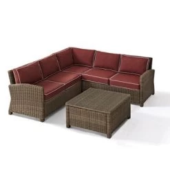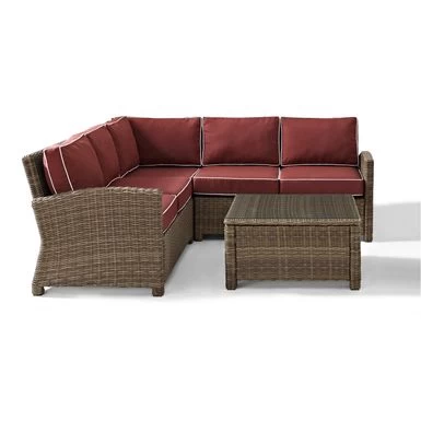 - Includes corner chair, center chair, corner loveseat, and coffee table