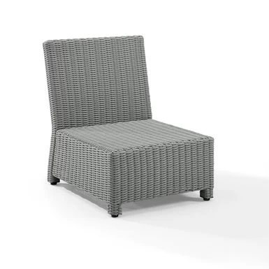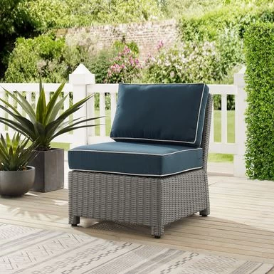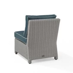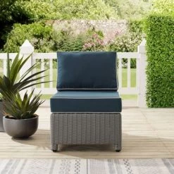 Upgrade your outdoor space with the Bradenton Outdoor Wicker Sectional Center Chair. This sturdy, all-weather chair features a steel frame wrapped in handwoven half-round resin wicker and topped with moisture-resistant cushions. With its modular design and deep seating, the Bradenton Center Chair provides comfort and flexibility. Perfect for outdoor relaxation, the chair comes in a variety of cushion colors and is a great addition to any retreat.