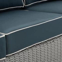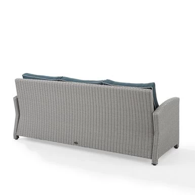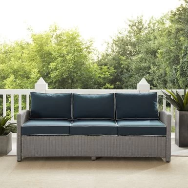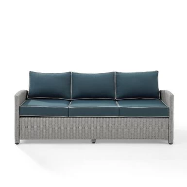 Get ready to relax in style with the Bradenton Outdoor Wicker Sofa! Crafted with a sturdy powder-coated steel frame and wrapped in all-weather resin half-round wicker, this transitional design piece boasts moisture-resistant cushion cores, adjustable levelers on legs, and removable, machine-washable cushion covers. Perfect for outdoor retreats, the Bradenton Sofa offers comfortable seating for up to three and timeless style.