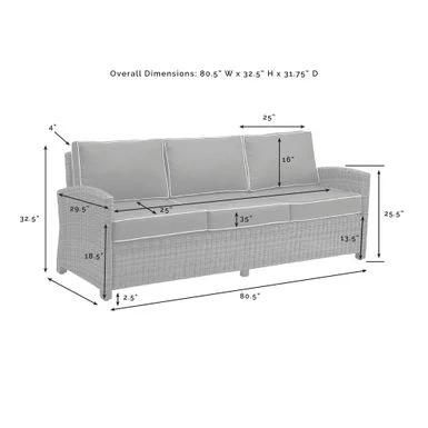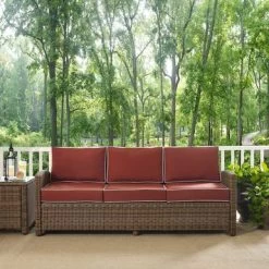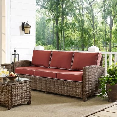 Kick back and relax on the Bradenton Sofa with Sangria Cushions, a perfect addition to your outdoor space. The wicker design is sturdy and charming, while the thick foam and polyester cushions provide lasting comfort and sophistication with a lovely sangria color that adds warmth to your patio.