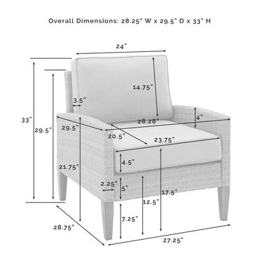 - 4.5″ thick seat cushion/3.5″ thick back cushion