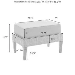 - Ottoman Dimensions: 25.75″W x 18″D x 17.5″H