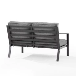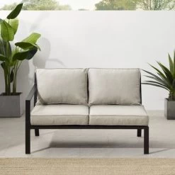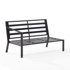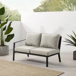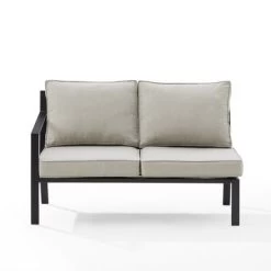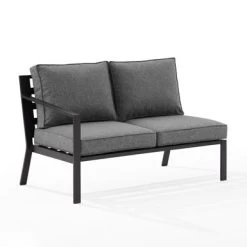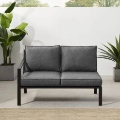The Clark Outdoor Metal Sectional Left Side Loveseat offers sleek and modern design, with a powder-coated steel frame and matte black finish. It features weather-resistant cushion covers and quick-drying olefin fabric, with 4″ thick seat and back cushions. This loveseat is the perfect spot for enjoying your morning coffee or curling up with a good book.