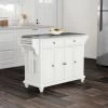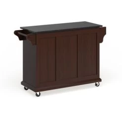 Add to your home with this solid black granite top kitchen cart/island. This kitchen cart/island has a stylish design and a rugged construction. The abundant storage space is matched with a granite top for a resilient work space as elegant as it is functional.
