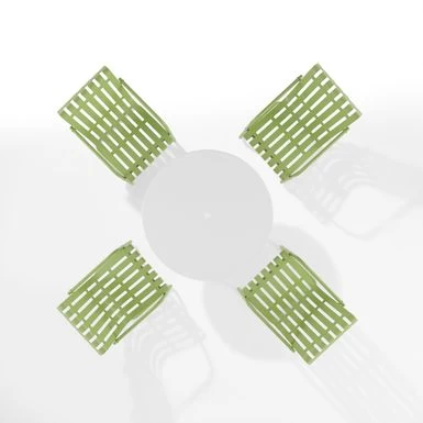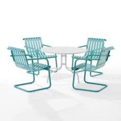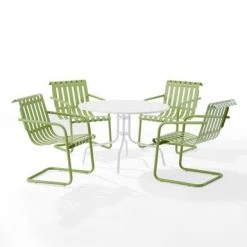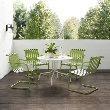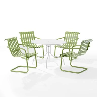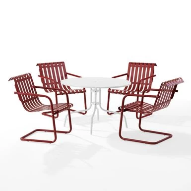 The Gracie 5pc Dining Set combines fashion and function in a colorful retro package. This set features four slatted chairs with cantilever bases surrounding a simple metal dining table. Relax and dine in vintage style with this classic table and chair set.Â