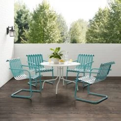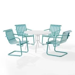 Gracie 5Pc Outdoor Metal Dining Set – 93″x93″x31.5″ – Pastel Green Satin