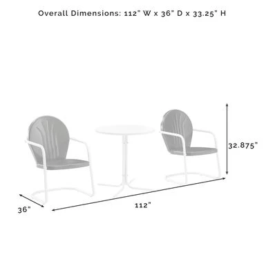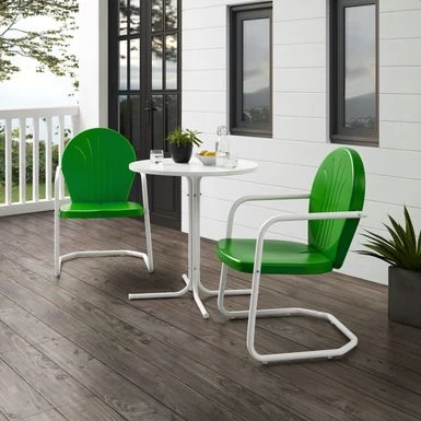 Enjoy the outdoors in style with the Griffith 3Pc Outdoor Bistro Set. Its powder-coated steel construction and retro design are both stylish and durable, making it ideal for balconies and patios. Customize your set with a variety of vibrant colors, and relax in comfort with its cantilever chairs and stable pedestal table. UV resistant and non-toxic, this set is the perfect way to make your outdoor space cozy and inviting.