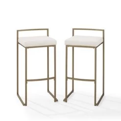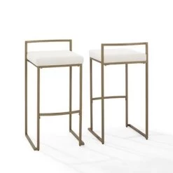 Upgrade your home bar or kitchen island with the Harlowe 2Pc Bar Stool Set. These stylish stools offer comfort and contemporary elegance with their plush velvet seats, sleek gold-finished steel frames, and geometric sled base design. The curved footrest and low back provide added comfort, making them perfect for extended seating. These stools pair well with various decor styles, including modern farmhouse, glam, Art Deco, and traditional. Elevate your dining experience with the Harlowe Bar Stool Set today.