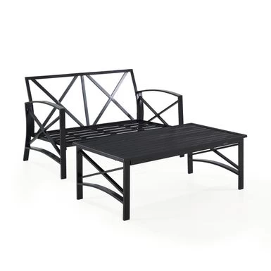Add simple elegance to your outdoor area with the Kaplan Collection. This two-piece set is made with rust protected premium steel with an oil bronze finish. The cushions have a moisture-resistant and UV-resistant cover to protect against fading. Add simple elegance to your outdoor area with the Kaplan Collection. This two-piece set is made with rust protected premium steel with an oil bronze finish. The cushions have a moisture-resistant and UV-resistant cover to protect against fading. This set includes a loveseat and a coffee table. It is easy to assemble and even easier to enjoy.