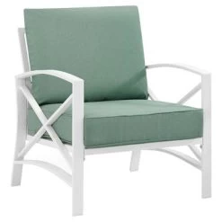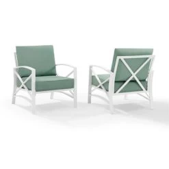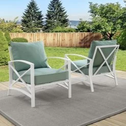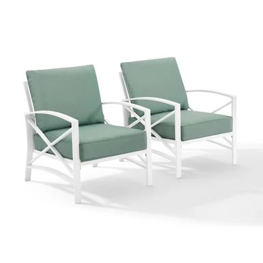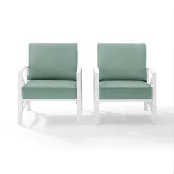Soak up the remaining warm days of the season with the inviting coziness of this outdoor set. Deep, wide seats and ergonomic backrests are paired with supportive armrests and plush cushions for a seat you won’t want to move from. Eye-catching cushion covers feature contrast piping and are treated to be UV, fade, and moisture-resistant.
