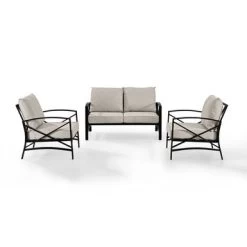 Kaplan 3 Pc Outdoor Seating Set With Oatmeal Cushion – Loveseat, Two Outdoor Chairs – 137″W X 35.5″H X 65″D – 137″W X 35.5″H X 65″D – Oil Rubbed Bronze