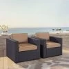 Beaufort 3 Pc Outdoor Wicker Seating Set With Mist Cushion – Two Outdoor Wicker Chairs, Coffee Table