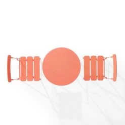 Simple and sweet, the Karlee 3pc Bistro Set adds a pop of color to any porch, patio, or balcony. The foldable chairs and table are designed to store easily and move effortlessly within your outdoor space. Simple and sweet, the Karlee 3pc Bistro Set adds a pop of color to any porch, patio, or balcony. The foldable chairs and table are designed to store easily and move effortlessly within your outdoor space. Constructed of sturdy steel with a vibrant finish, this bistro set maximizes limited outdoor space. Enjoy drinks poolside or afternoon tea in the garden with the Karlee 3pc Bistro Set.Features:Retro designConstructed of powder-coated weather-resistant steelUV and rust resistantCoral finishClassic slatted seatsThe chairs have an open back and single top rail for comfort and breathabilityBistro table has a solid round top with a 23.63″ diameterFoldable for easy storagePairs well with modern and minimalist decorTable weight limit is 100lbs
