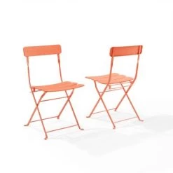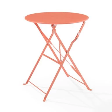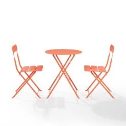Simple and sweet, the Karlee 3pc Bistro Set adds a pop of color to any porch, patio, or balcony. The foldable chairs and table are designed to store easily and move effortlessly within your outdoor space. Simple and sweet, the Karlee 3pc Bistro Set adds a pop of color to any porch, patio, or balcony. The foldable chairs and table are designed to store easily and move effortlessly within your outdoor space. Constructed of sturdy steel with a vibrant finish, this bistro set maximizes limited outdoor space. Enjoy drinks poolside or afternoon tea in the garden with the Karlee 3pc Bistro Set.Features:Retro designConstructed of powder-coated weather-resistant steelUV and rust resistantCoral finishClassic slatted seatsThe chairs have an open back and single top rail for comfort and breathabilityBistro table has a solid round top with a 23.63″ diameterFoldable for easy storagePairs well with modern and minimalist decorTable weight limit is 100lbs