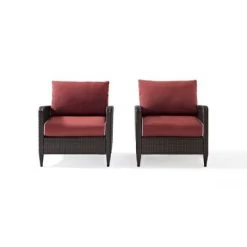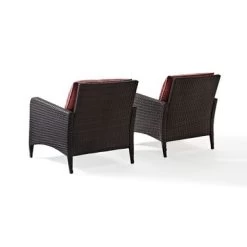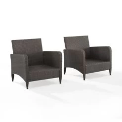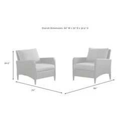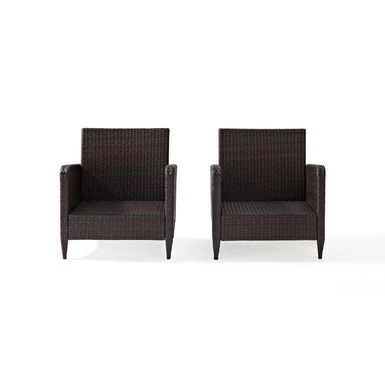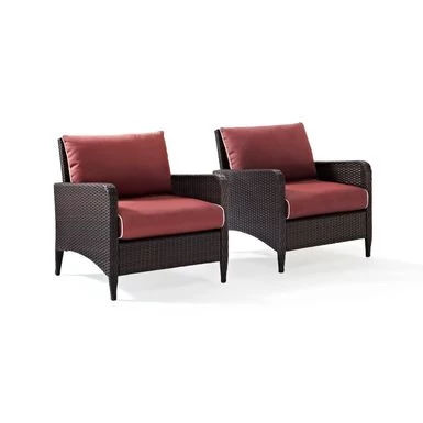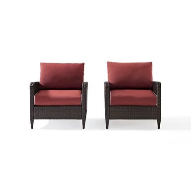 Provide cozy, fashionable, rugged seating to your outdoor retreat with this delightful twosome. Elegant, all-weather wicker woven over powder-coated steel pairs beautifully with plush piped cushions, creating a perfect perch on a hot summer day.Â