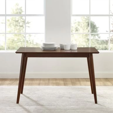 Bring a touch of mid-century modern design to your dining space with the Landon Dining Table. Its clean lines, tapered legs, and mahogany finish create a stylish and inviting atmosphere for any meal. Perfect for seating up to six diners, this table pairs well with modern, farmhouse, and rustic decor.