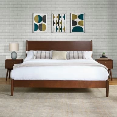 Give your bedroom a modern, mid-century feel with the Landon bedset. The hardwood frame hints at subtle refinement, without overpowering your current decor. Easy to assemble, with a sturdy roll out slats. Available in Queen or King sizes.