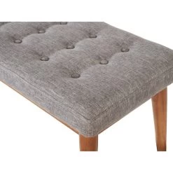 The Landon Bench is mid-century modern versatility at its finest. This bench could be used at the dining room table, the end of your bed, or in your entryway. The linen gray button-tufted upholstery is comfortable, while the warm acorn finished legs are sturdy and include an adjustable leveler. The Landon Bench is useful, without sacrificing style.