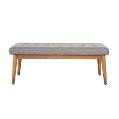 The Landon Bench is mid-century modern versatility at its finest. This bench could be used at the dining room table, the end of your bed, or in your entryway. The linen gray button-tufted upholstery is comfortable, while the warm acorn finished legs are sturdy and include an adjustable leveler. The Landon Bench is useful, without sacrificing style.