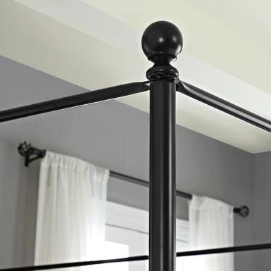 Expect sweet dreams in the Montgomery canopy bed. Forged from thick iron bars in the traditional “captured circle” design, this bed exudes an easy elegance. With clean lines and an adaptable appearance, the Montgomery, suits many aesthetics. Expect sweet dreams in the Montgomery canopy bed. Forged from thick iron bars in the traditional “captured circle” design, this bed exudes an easy elegance. With clean lines and an adaptable appearance, the Montgomery, suits many aesthetics. If you want a modern vibe, we recommend using earth tone colored bedding. For a beachy feel, adorn the canopy with sheer curtains and use sea-glass, or turquoise bedding. The options are endless.