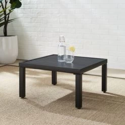 The Piermont Outdoor Metal Sectional Side Table is the perfect addition to your outdoor seating area. Its modern, low-profile design features a classic slatted top and a weather-resistant powder-coated steel frame with a matte black finish. It’s UV and rust resistant, making it perfect for all-weather use. With a 25lbs weight capacity, it’s ideal for nestling between modular seating and can easily coordinate with a variety of outdoor design styles.