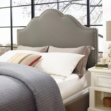 Revel in relaxation with the Preston Bedset. The scalloped edge shape of the headboard is highlighted with nickel or antique brass trim. Choose charcoal, merlot, creme, navy, or shadow gray colored linen upholstery. Easy to assemble, with a sturdy frame. Available in Full/Queen or King/ California King.