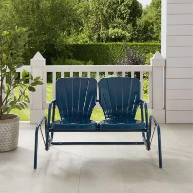 Enjoy the classic charm of the Ridgeland Outdoor Metal Loveseat Glider. This loveseat has a vintage-inspired design with a clamshell back, decorative grooves, and a smooth gliding base for stylish comfort. It is crafted with durable steel in a powder-coated finish that is resistant to rust, UV rays, and sun fade, making it ideal for your porch or patio.