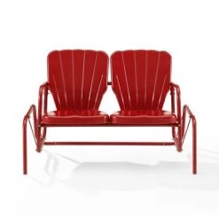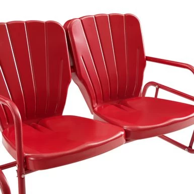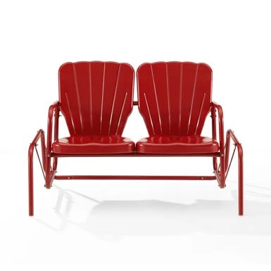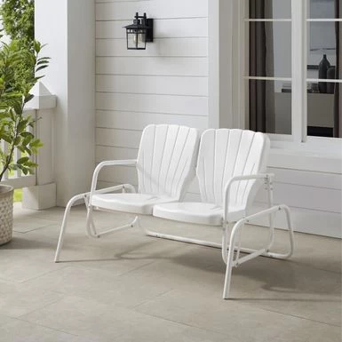 Enjoy the classic charm of the Ridgeland Outdoor Metal Loveseat Glider. This loveseat has a vintage-inspired design with a clamshell back, decorative grooves, and a smooth gliding base for stylish comfort. It is crafted with durable steel in a powder-coated finish that is resistant to rust, UV rays, and sun fade, making it ideal for your porch or patio.
