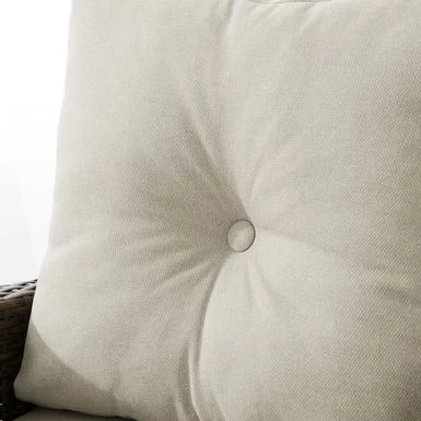 - Back cushion features a single button tuft, 5.75-inch thick seat cushion and 4.75-inch thick back cushion