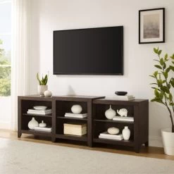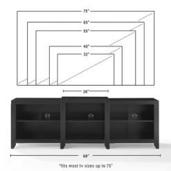 Upgrade your home entertainment experience with the Ronin 69″ TV Stand, perfect for TVs up to 75″. With a sleek low-profile design and tapered legs, this TV stand offers three open cabinets with adjustable shelving to accommodate all your media accessories. Cable management is made easy with pre-cut holes at the back. The Ronin TV Stand is a stylish addition to any living room, blending well with farmhouse, traditional, and mid-century modern décor.