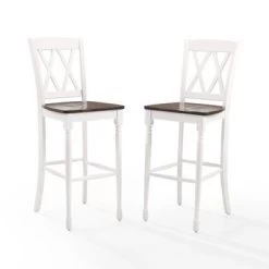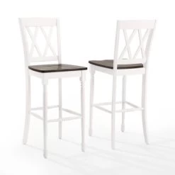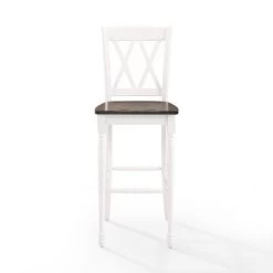 Upgrade your breakfast bar or bar height dining table with the beautifully crafted Shelby 2Pc Bar Stool Set. The molded wood seat and double X design on the back provide a classic touch while the traditional turned front legs add charm and function to your kitchen or dining space. The contoured wood seat with a cherry finish and rubbed white finish give a touch of sophistication to this stool set. Pairing well with rustic and farmhouse decor, these stools can also be used with bar height tables and kitchen islands.