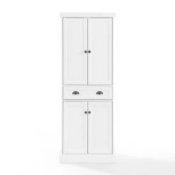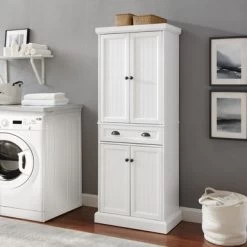 Bring the coastal charm to your home organization with the Shoreline Pantry. The pantry showcases beautiful beadboard details and features two cabinets with adjustable shelving, along with a sizable drawer between them, providing ample storage space for your household items. Whether in your kitchen, dining room, or common area, this pantry is a perfect blend of style and functionality. The genuine metal hardware with a bronze finish adds a touch of elegance to its white finish, making the Shoreline Pantry a desirable addition to any traditional or farmhouse decor.