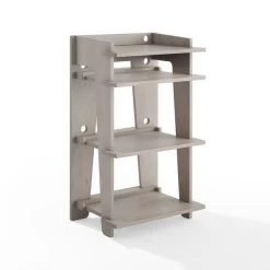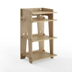 The Soho Turntable Stand by Crosley is the perfect solution for music enthusiasts who want a stylish and functional way to organize their turntable and music accessories. The top shelf accommodates most component-style turntables and features two cable management holes to keep cords neat and tidy. The second shelf is ideal for preamps, mini amps, cleaning supplies, and more. The bottom two shelves can hold up to 100 records each, are equipped with bumpers for easy access, and have two grooves that display the album cover of the record that’s playing. The adjustable feet ensure stability on any surface, and the stand is easy to assemble. Get your hands on the most thoughtful and affordable turntable stand on the market – the Soho Turntable Stand!
