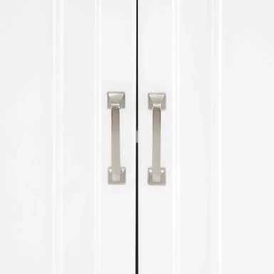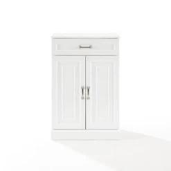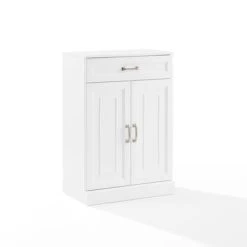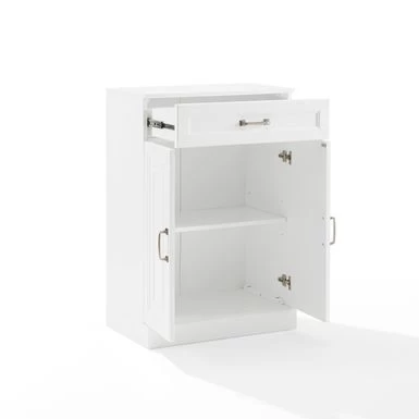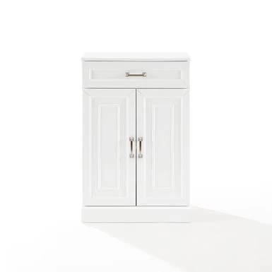 The Stanton Storage Cabinet combines classic styling with the versatility of modular design. Featuring an adjustable shelf plus a full-extension drawer, this cabinet is great for organizing smaller spaces. The Stanton Storage Cabinet combines classic styling with the versatility of modular design. Featuring an adjustable shelf plus a full-extension drawer, this cabinet is great for organizing smaller spaces. Panel doors on the cabinet keep everyday items out of sight, while the modularity of the Stanton Storage Cabinet allows it to mix with other items in the collection for customizable larger-scale storage.Features:Traditional designWhite finishGenuine metal hardware in a brushed nickel finishAdjustable and removable shelf inside cabinet with a 15lb weight limitFull-extension storage drawer on ball-bearing glides with a 15lb weight limitDouble cabinet doors with concealed hingesRecessed paneling on cabinet doors and drawer frontCan be used as an accent cabinet, short pantry, or for bathroom storgeModular design allows multiple units to be paired together or with other items in the collectionPairs well with modern farmhouse decor