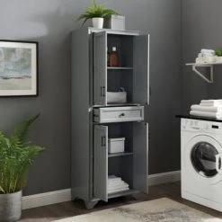 Crosley Seaside Grey Freestanding Kitchen Pantry Cupboard – 30 “W X16 “D X 72 “H – Gray