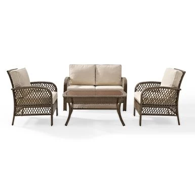 Set Includes: Loveseat, Two Arm Chairs, and Tempered Glass Top Coffee Table