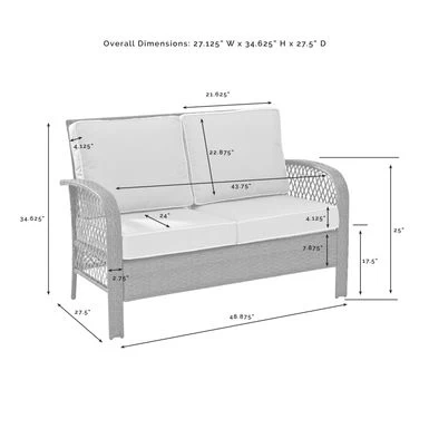 - Loveseat: 34.65″H x 48.88″W x 27.5″DÂ