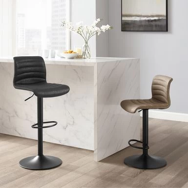 Add flexible seating and style to your kitchen or dining area with the versatile Wyatt Adjustable Height Swivel Stool. The channel tufted seat, upholstered in rich faux leather, sits atop a gas-lift adjustable swivel base with a matte black finish and a footrest. Adjust the seat height from 23.5″ to 32″ to use at bar or counter height. This stool features a transitional design and pairs well with industrial, rustic and modern decor. Assembly is easy and quick.